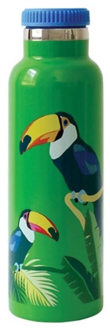 Această sticlă este fabricată din oțel inoxidabil cu pereți dubli și capac din plastic.