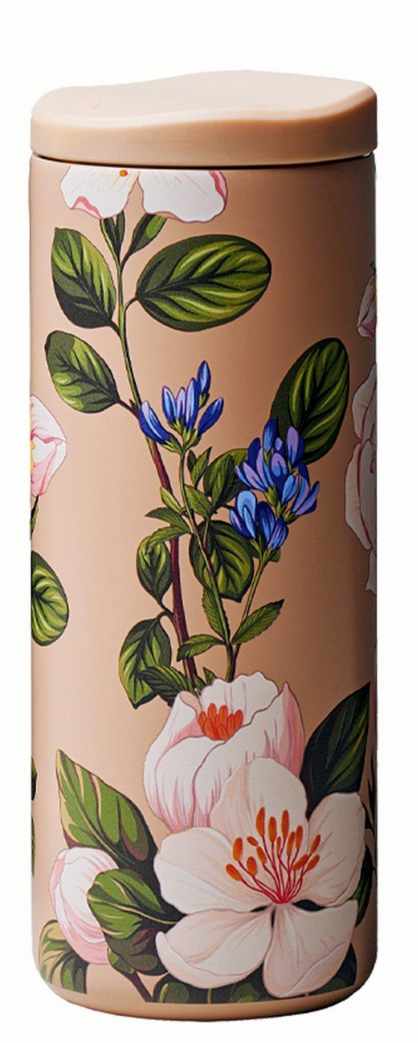Termosul elegant SlideCup NEO Afternoon Table, prezentat aici în bej pastel cu flori și frunze, combină designul elegant cu funcționalitatea practică. Design de William Morris. O notă de vară, aduce voie bună atunci când ești în mișcare, la birou, la școală, la universitate și în sport. Acest pahar de înaltă calitate, fabricat din oțel inoxidabil 304 cu pereți dubli, îți menține eficient băuturile calde sau reci. SlideCup NEO este special conceput pentru utilizare mobilă și, cu capacul etanș și capacitatea de 350 ml, oferă atât siguranță, cât și o capacitate suficientă pentru deplasări.